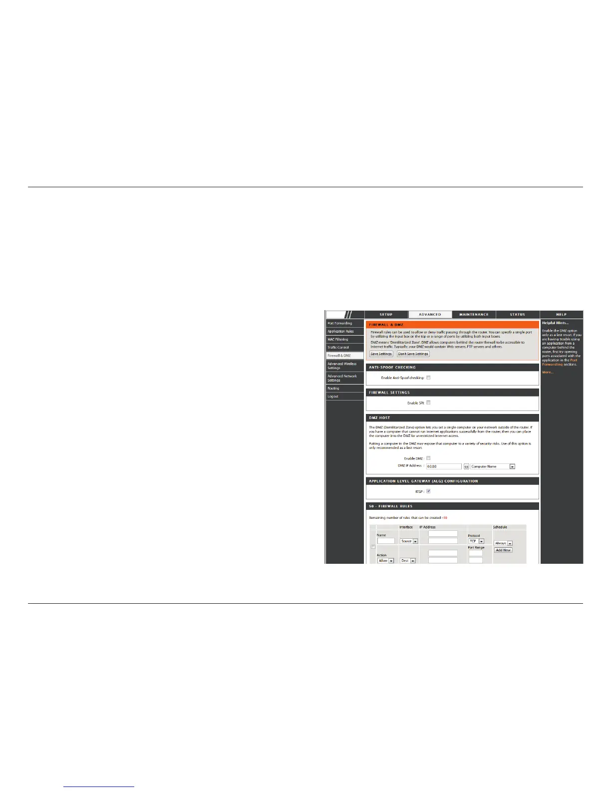 This section will allow you to set up a DMZ host and to set up rewall rules.