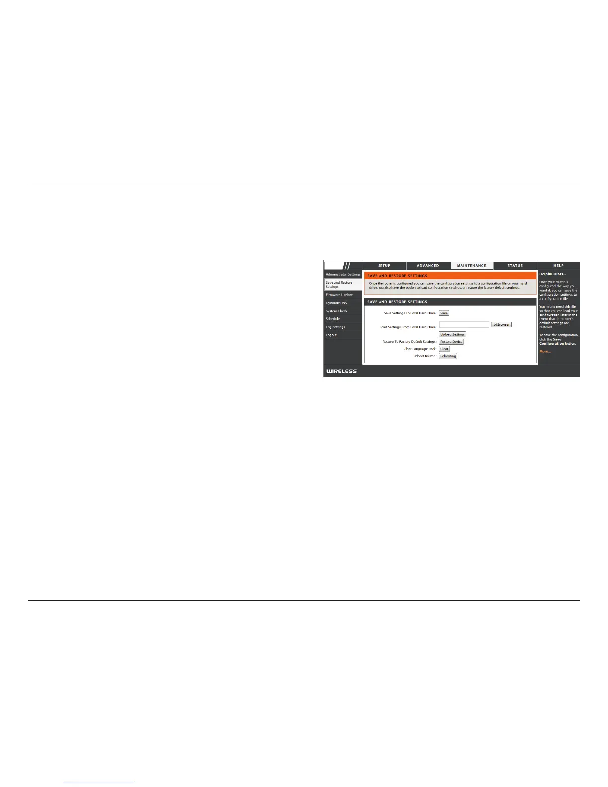 This window allows you to save your conguration le to a hard drive, load conguration settings from a hard drive, and restore