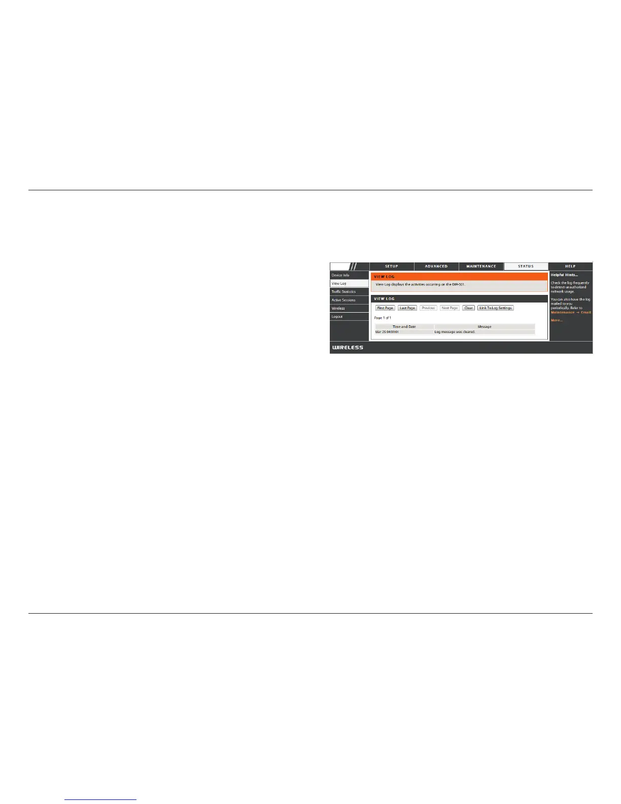 This window allows you to view a log of activities on the Router. This is especially helpful detecting unauthorized network usage.
