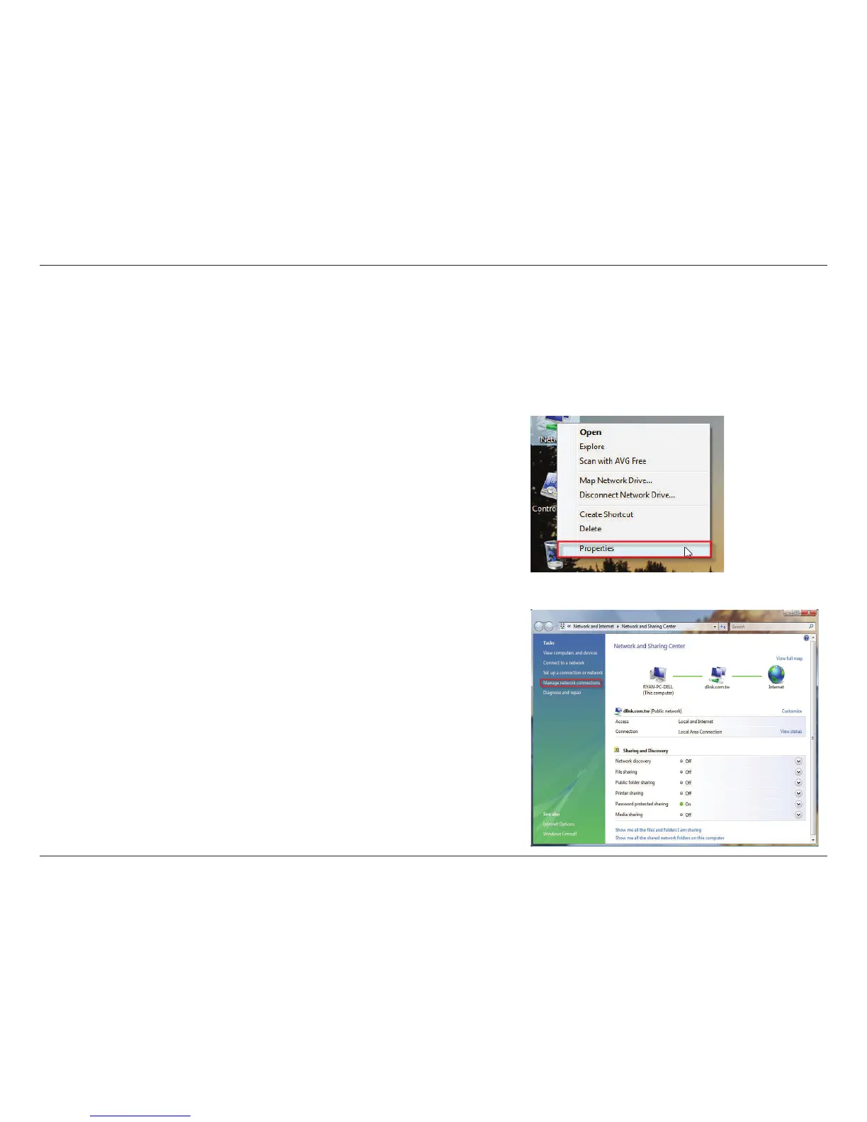2. Click the Manage network connections link in the Network