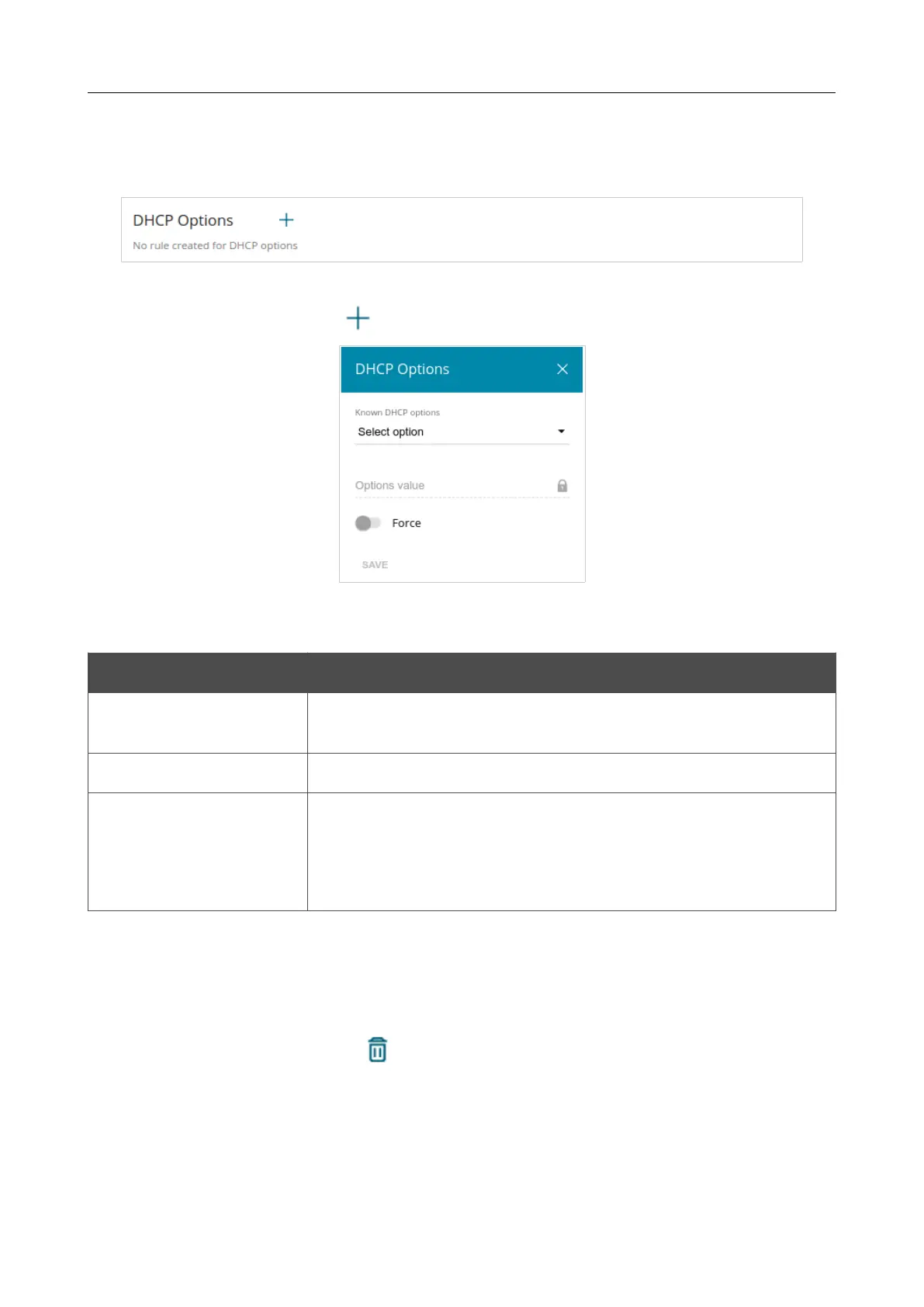 In the DHCP Options section, you can change default values for some options of DHCP protocol