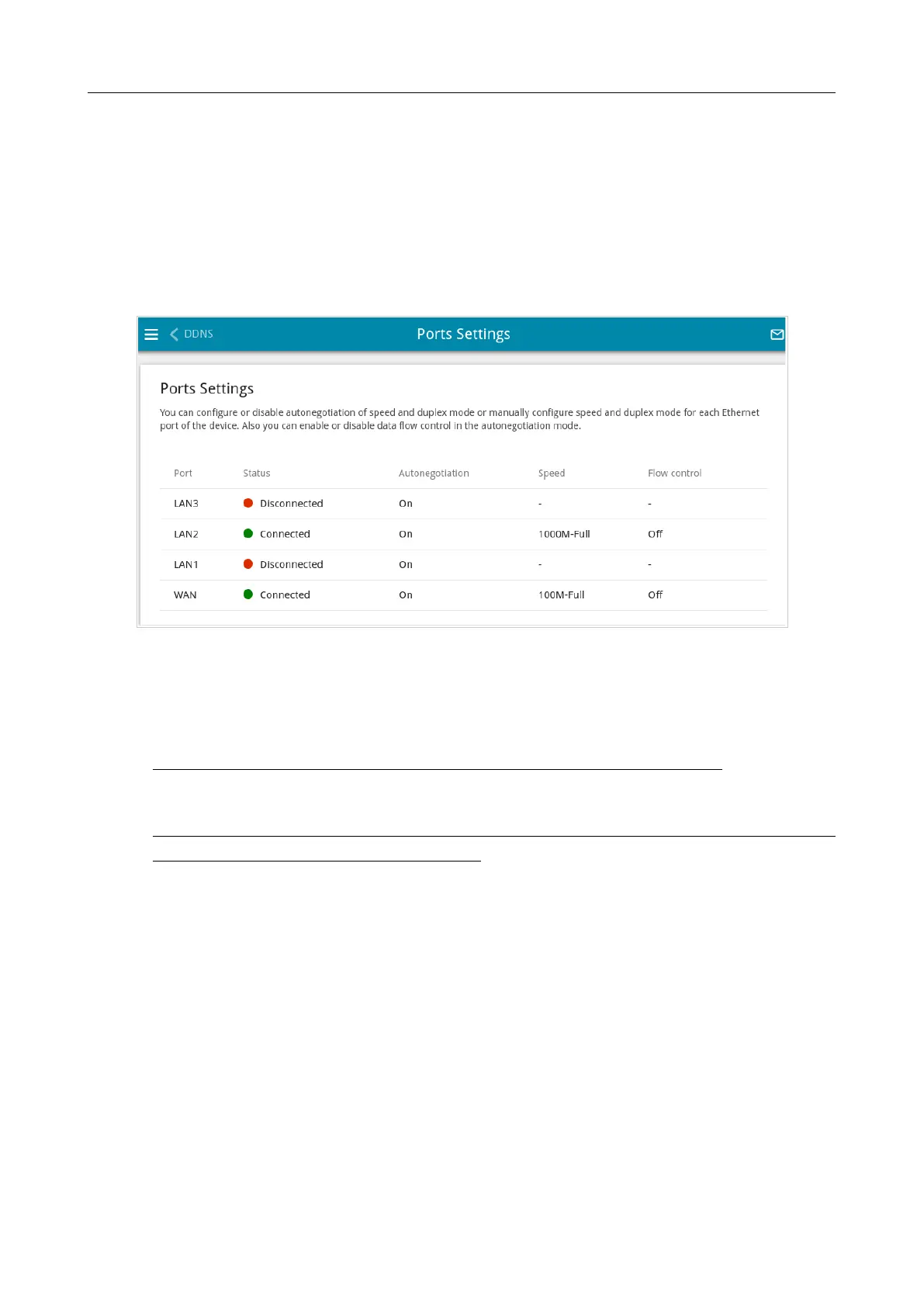 On the Advanced / Ports Settings page, you can configure or disable autonegotiation of speed