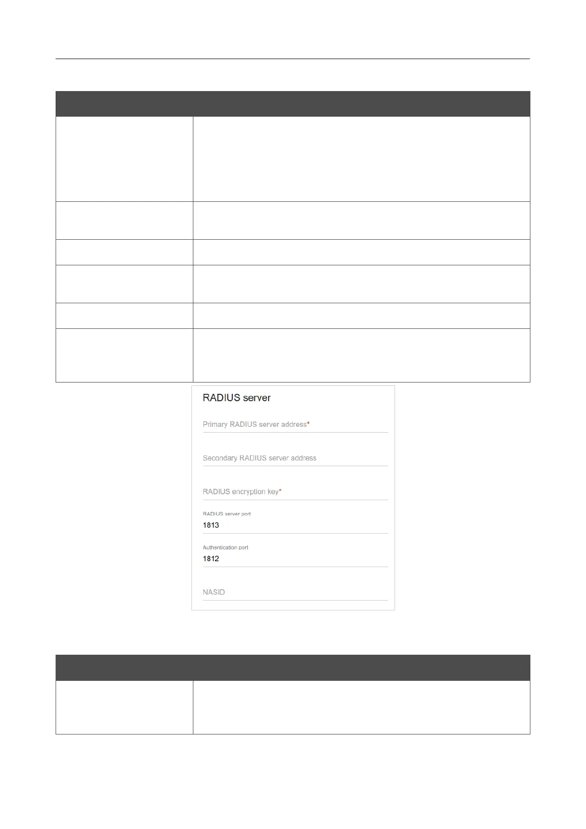 In the RADIUS server section, you can specify the following parameters: