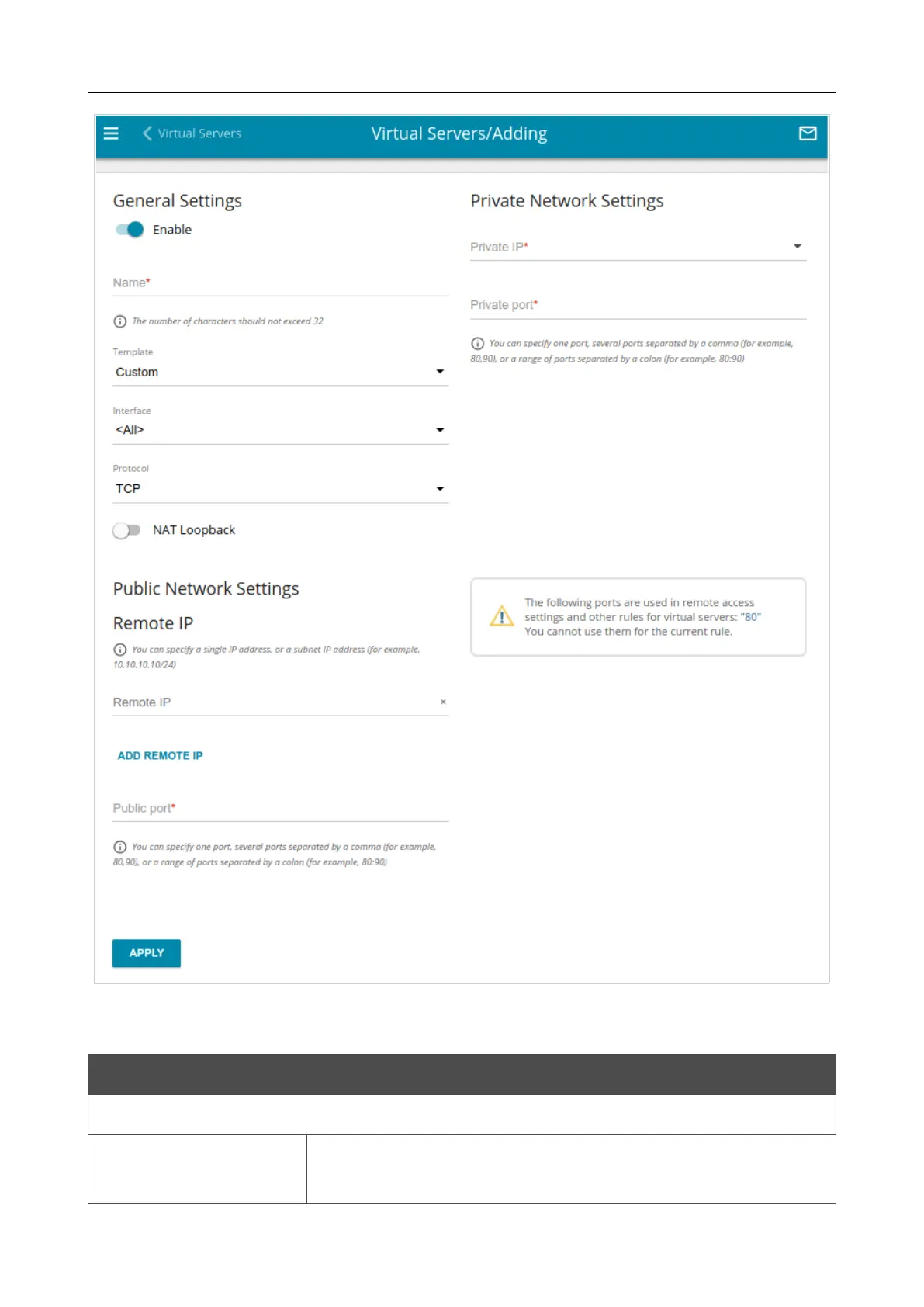 Figure 156. The page for adding a virtual server.