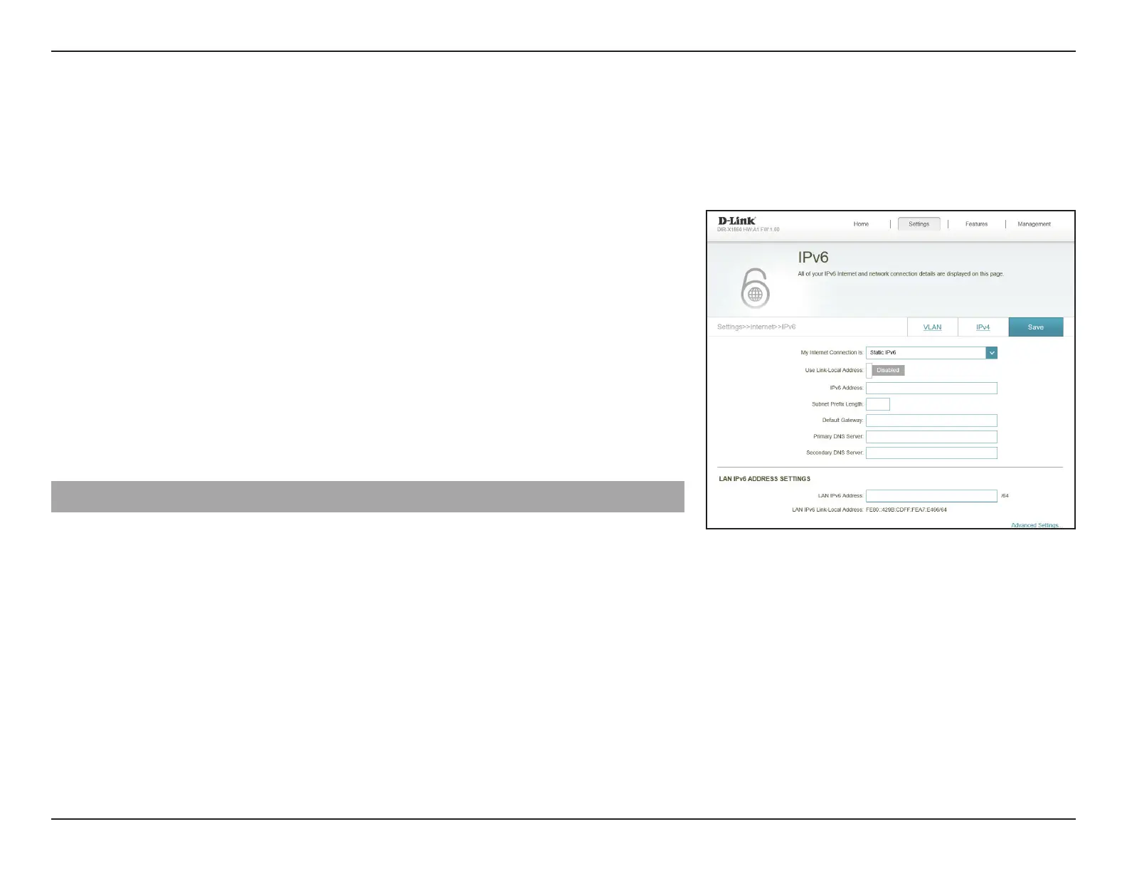 Select Static IP if your IPv6 information is provided by your Internet Service Provider (ISP). Click Save at any time to save the