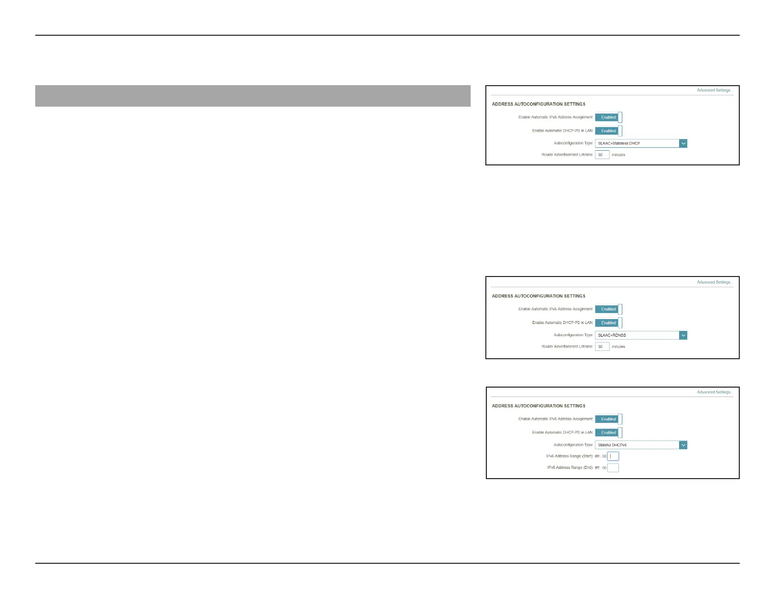 SLAAC+RDNSS or SLAAC+Stateless DHCP as the Autoconguration Type: