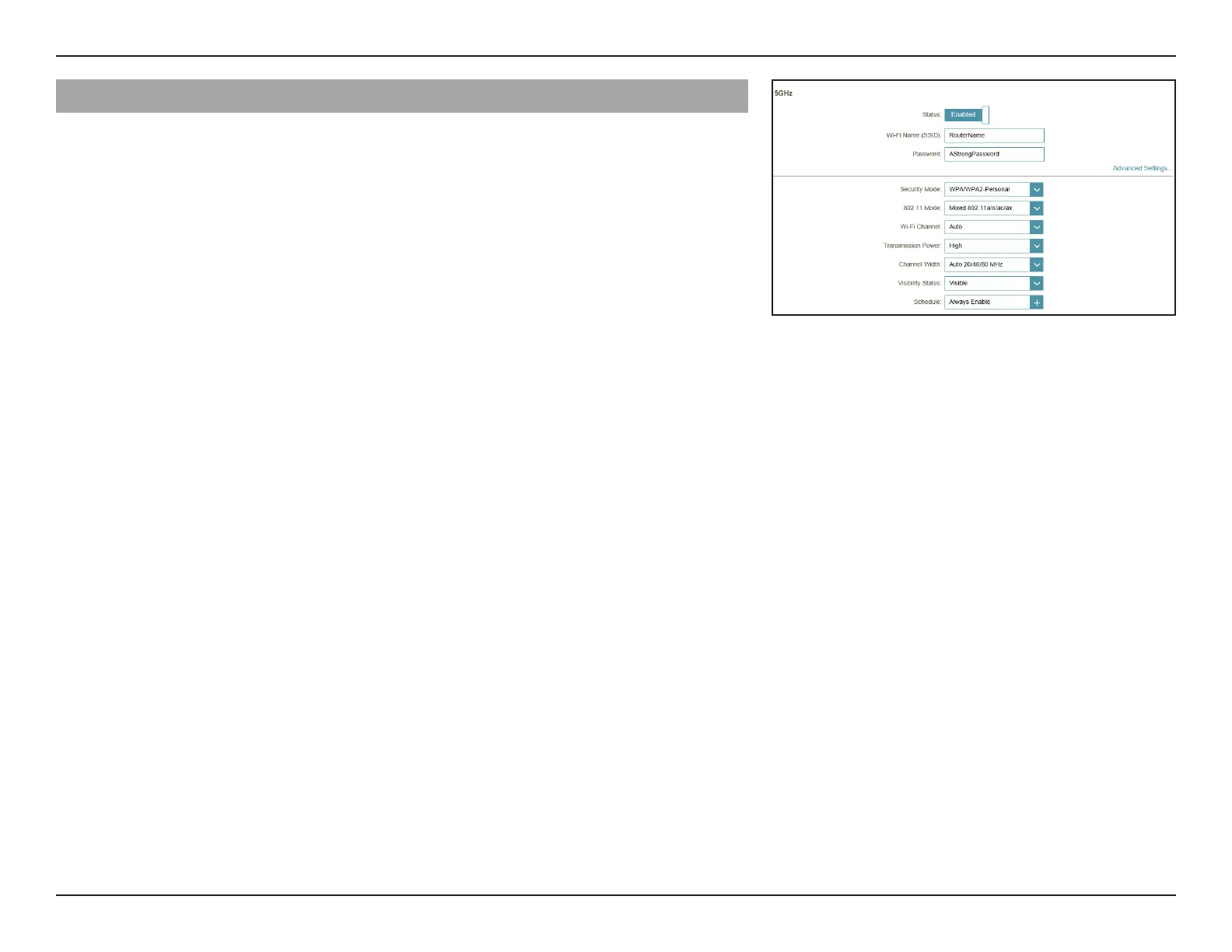 Wi-Fi Channel Select the desired channel. The default is Auto (recommended).