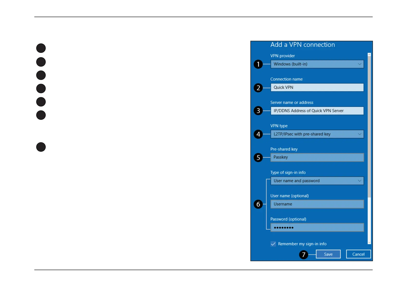 Your Windows 10 system is now configured to connect to your Quick VPN