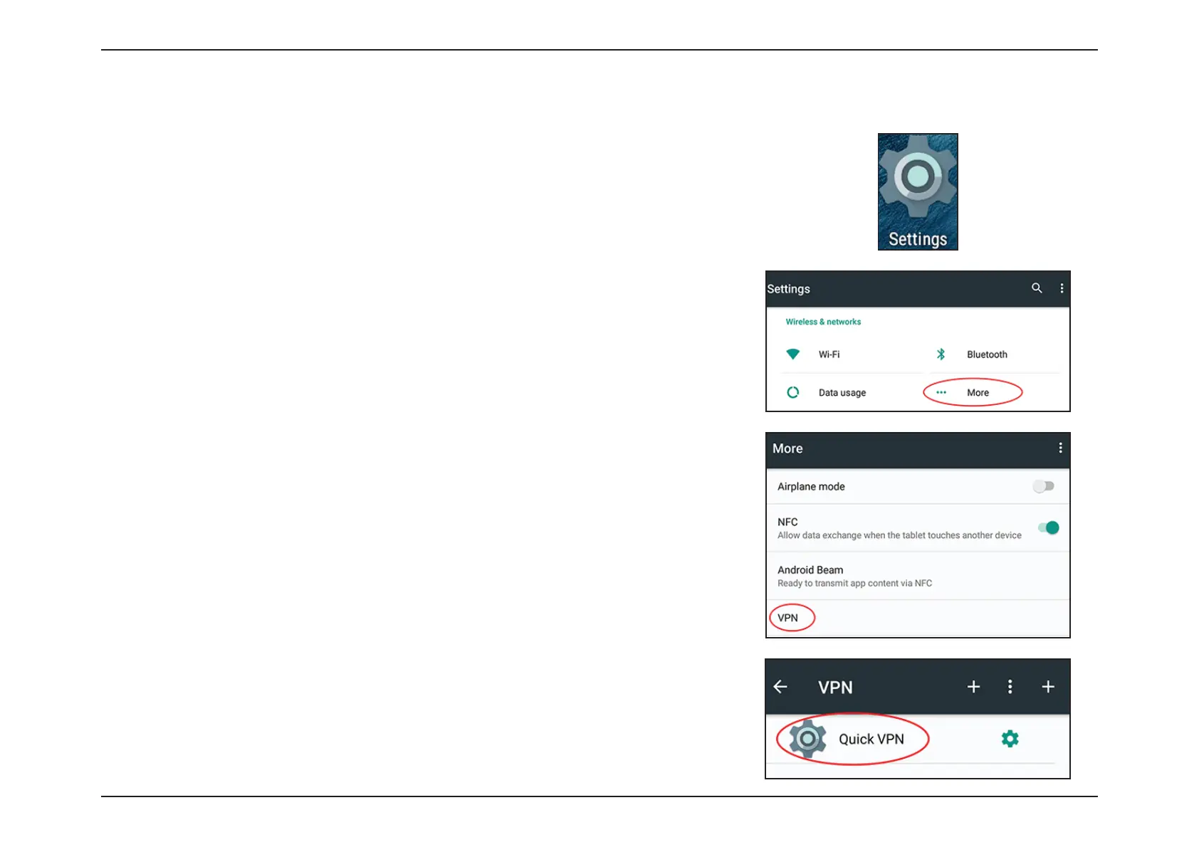 > More from the Wireless & networks > VPN and select the Quick VPN