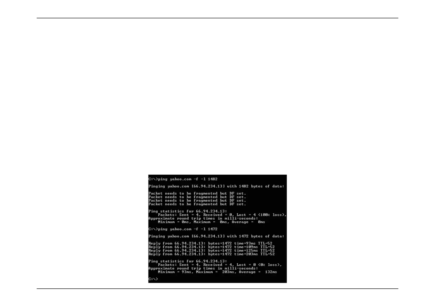 Example: ping yahoo.com -f -l 1472