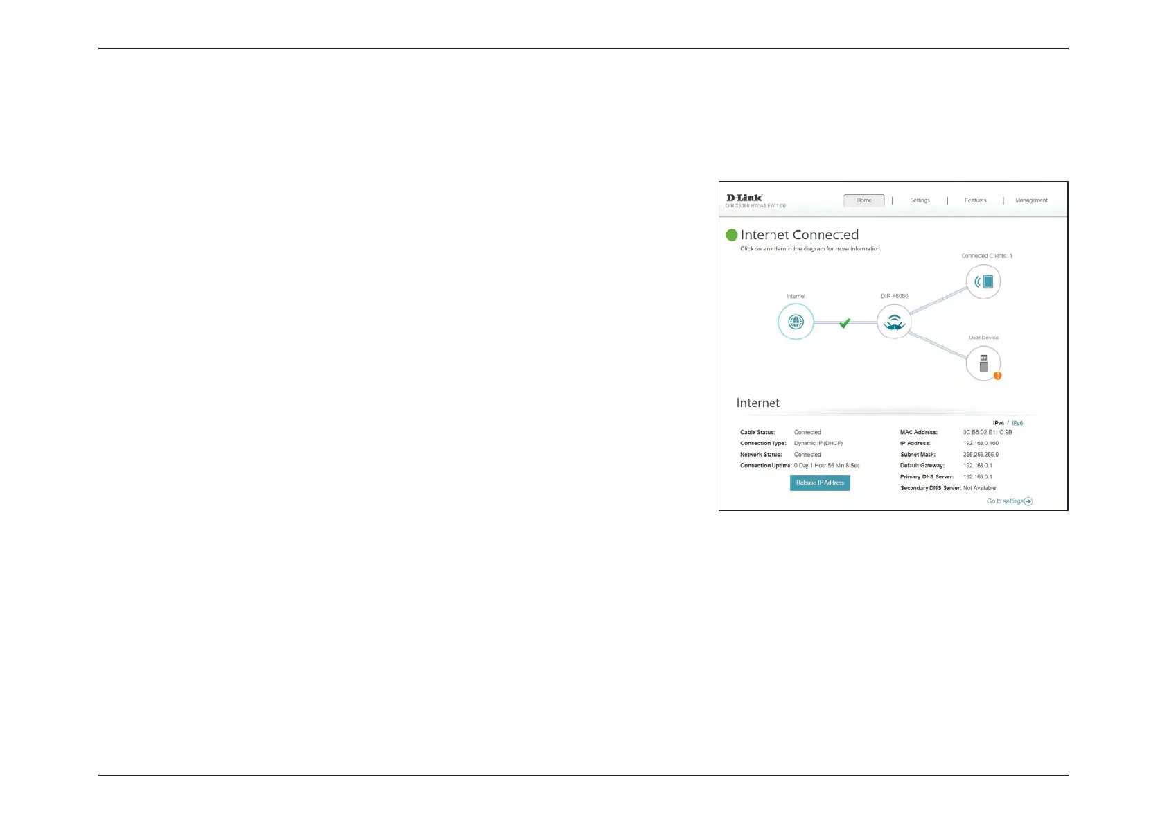 To reconfigure the Internet settings, refer to Internet - IPv4 on page 29