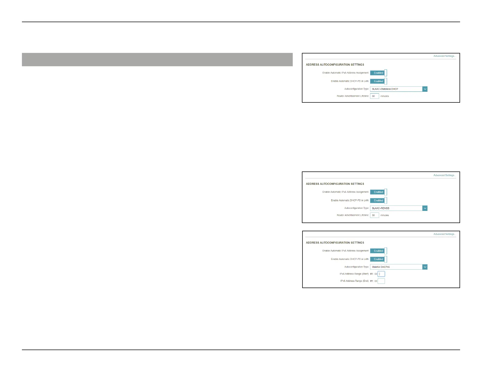 SLAAC+RDNSS or SLAAC+Stateless DHCP as the Autoconguration Type: