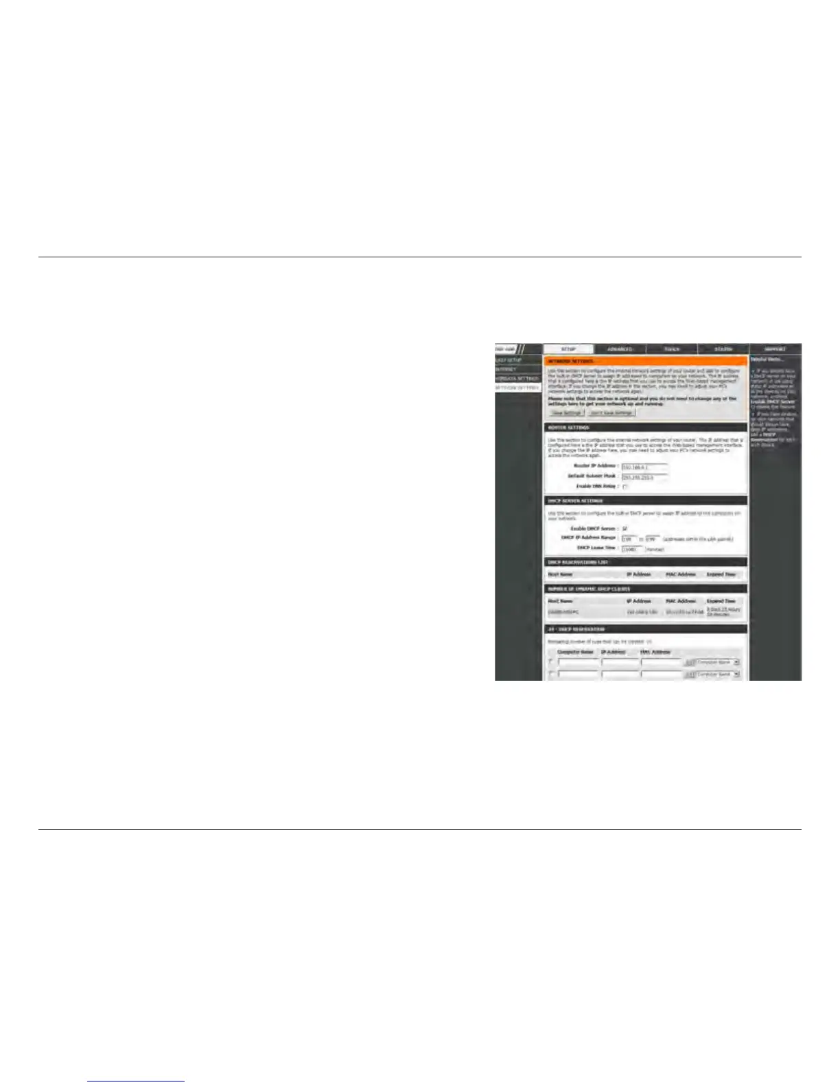 This section will allow you to change the local network settings of the router and to congure the DHCP settings.