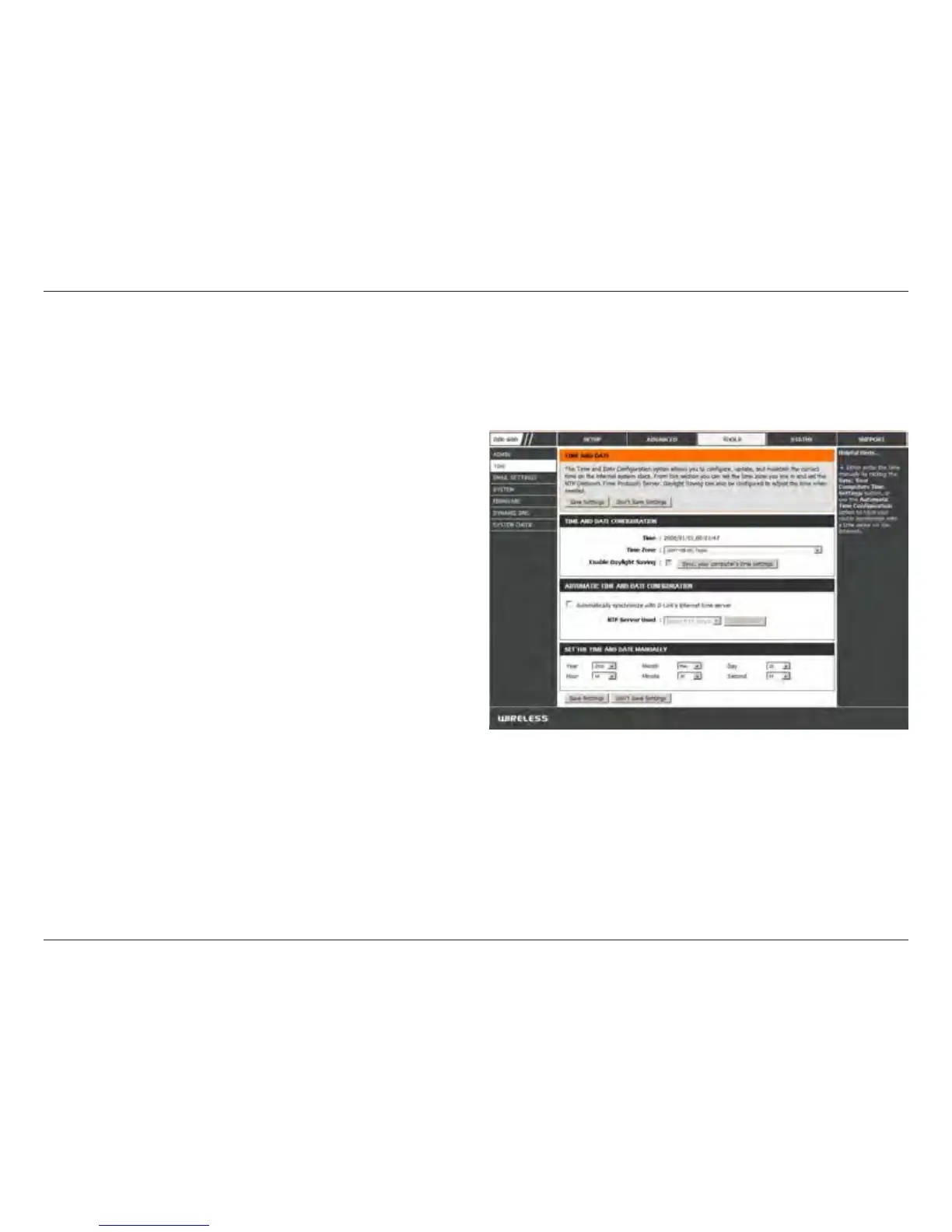 The Time Conguration option allows you to congure, update, and maintain the correct time on the internal system