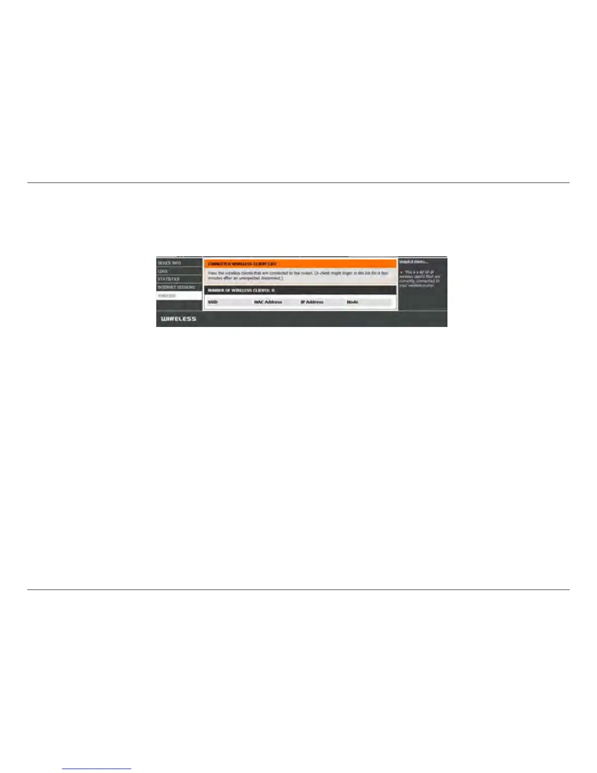 The wireless client table displays a list of current connected wireless clients. This table also displays the connection
