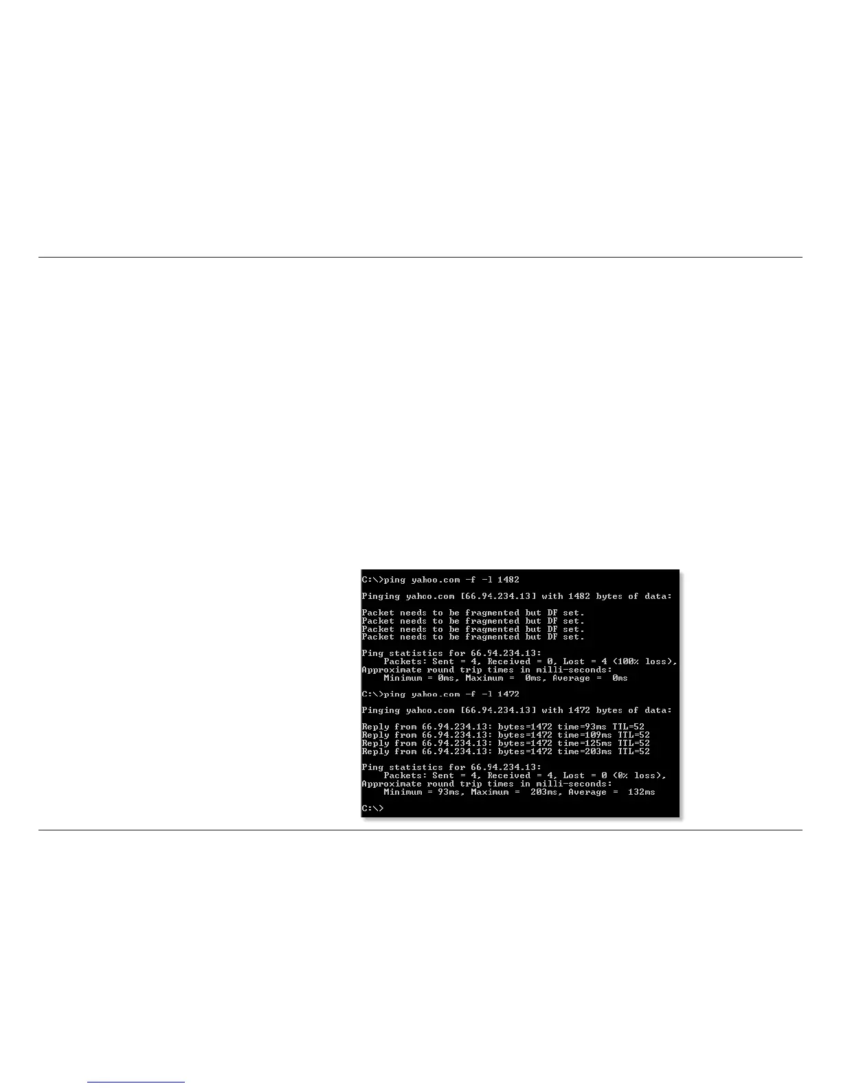 Example: ping yahoo.com -f -l 1472