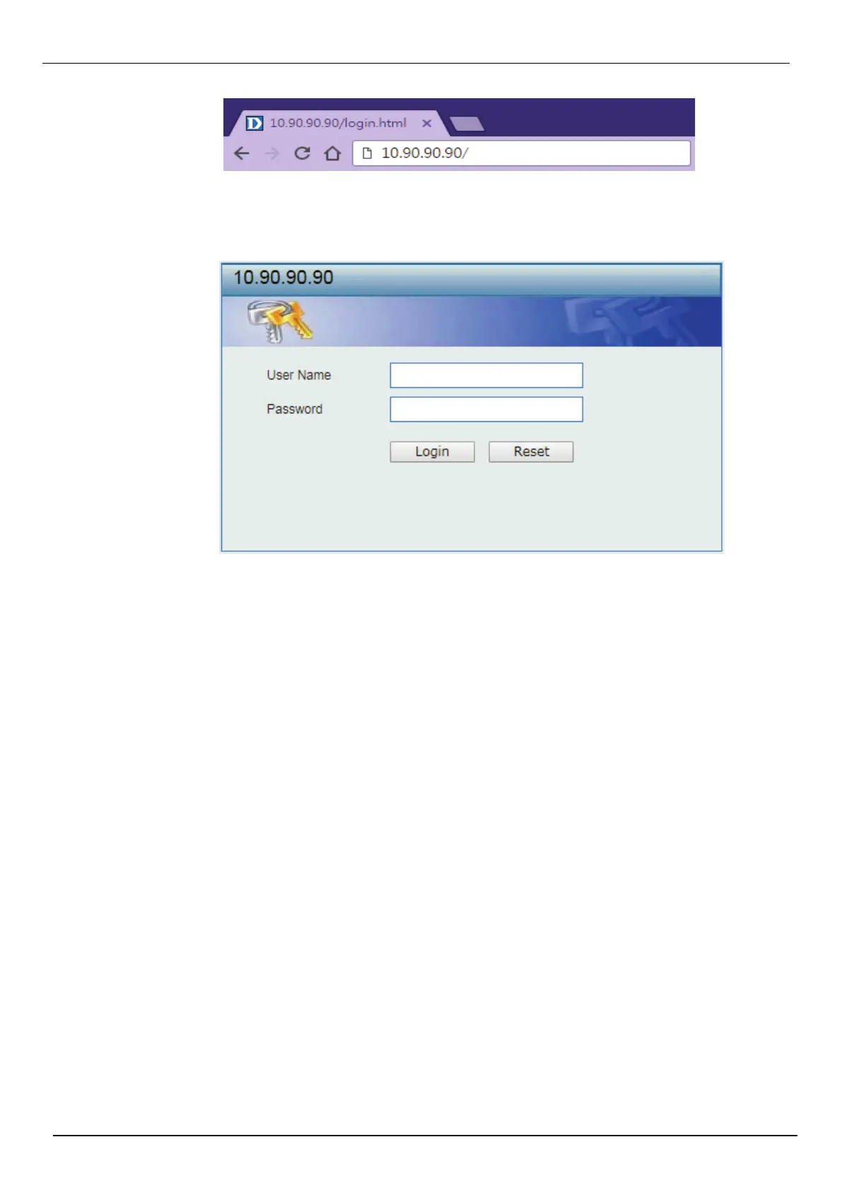 Figure 2-1 Displays entering the IP address in Internet Explorer