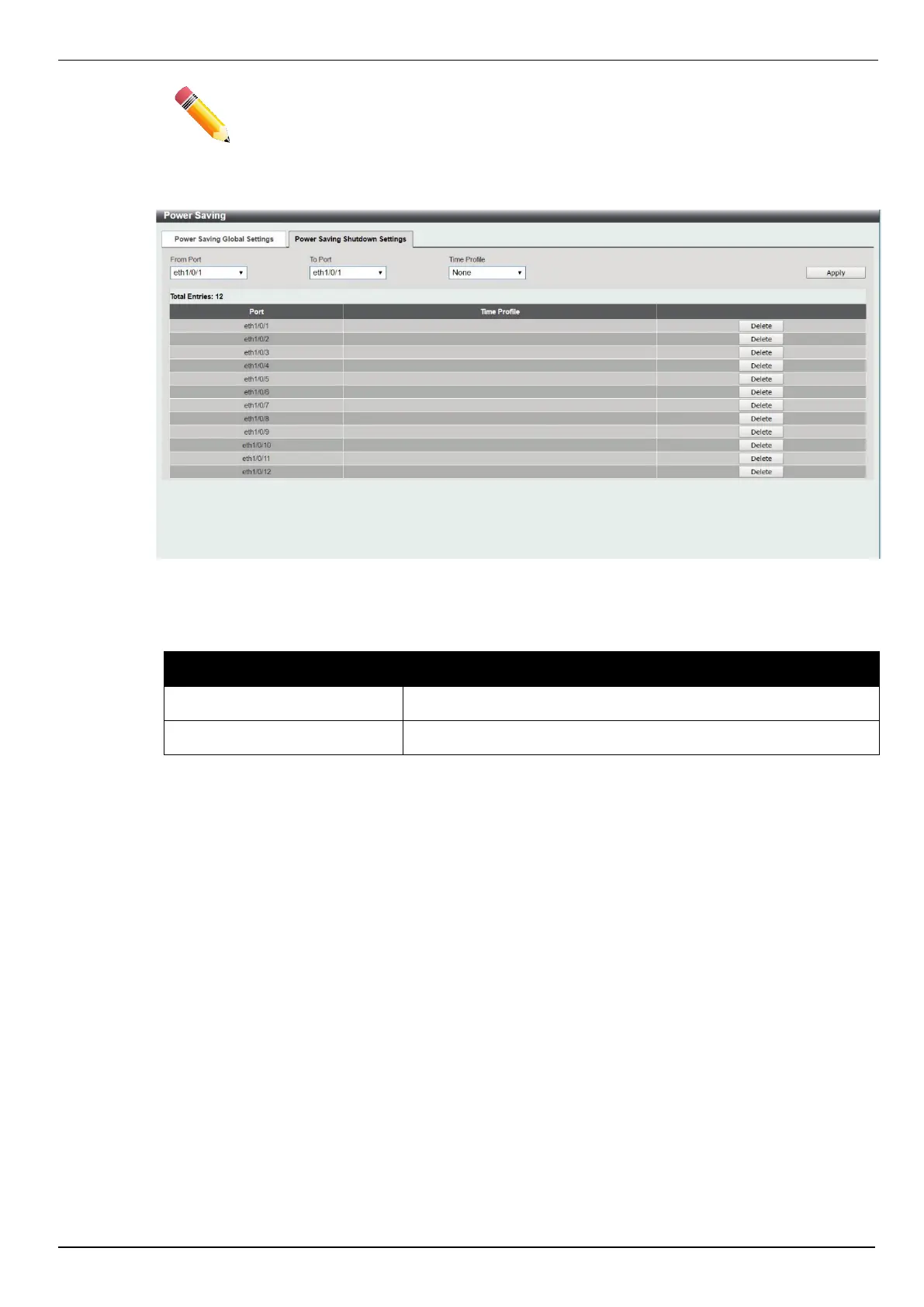 After clicking the Power Saving Shutdown Settings tab, the following page will appear.