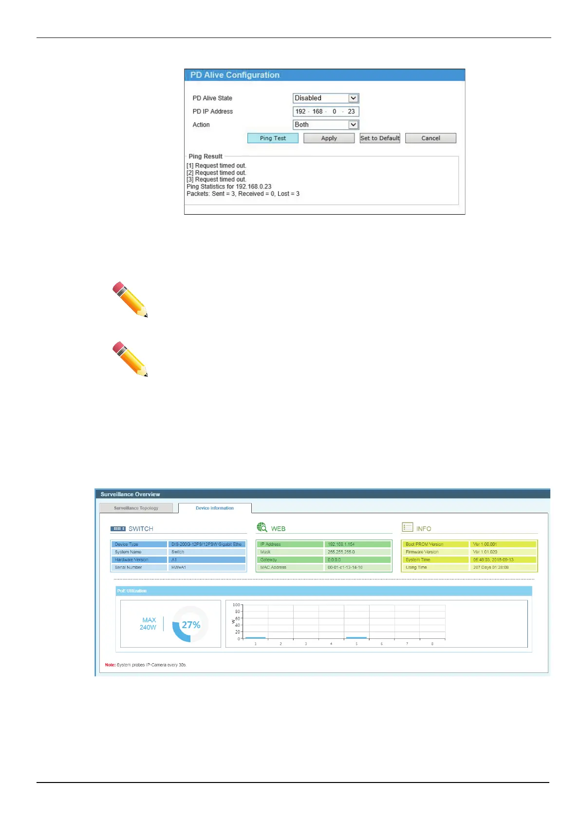 Figure 12-5 PD Alive Configuration window (Ping Result)