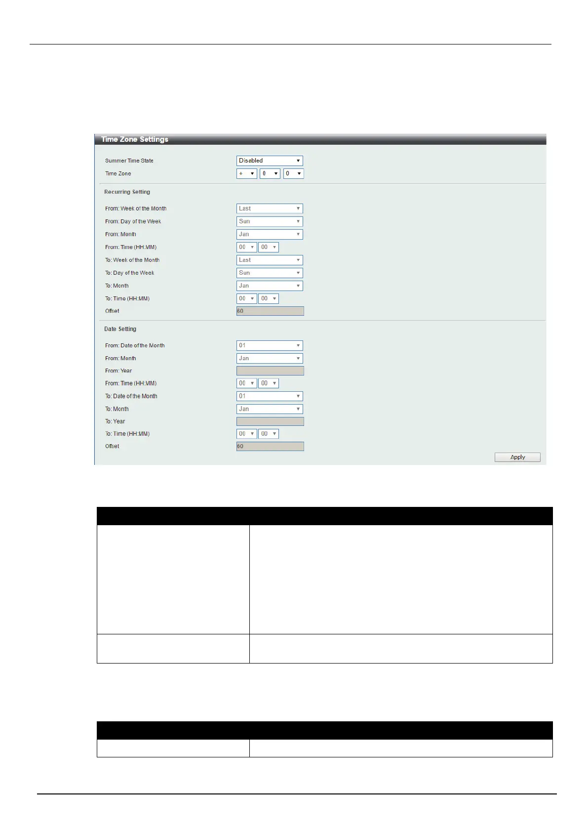 This window is used to configure time zones and Daylight Savings Time settings for SNTP.