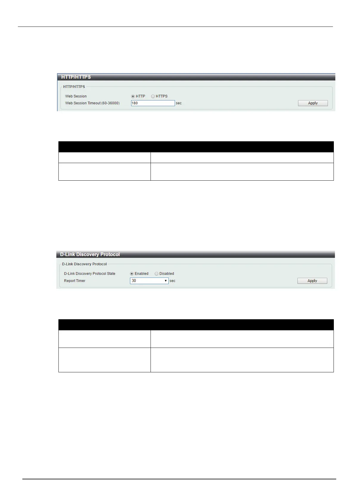 The fields that can be configured for D-Link Discovery Protocol are described below: