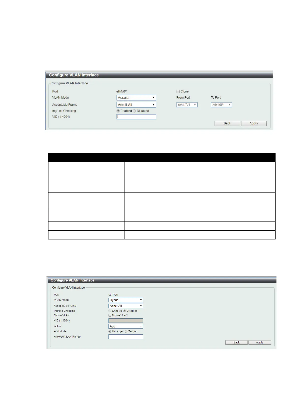 When Hybrid was selected as the VLAN Mode, the following page will appear.