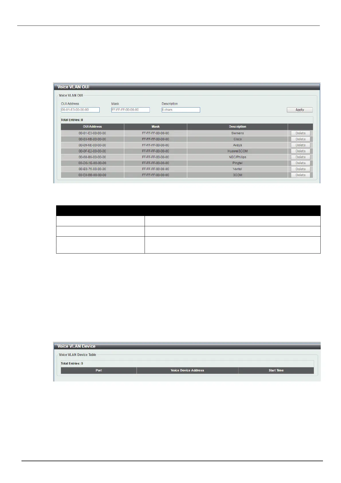 To view the following window, click L2 Features > VLAN > Voice VLAN > Voice VLAN OUI, as show