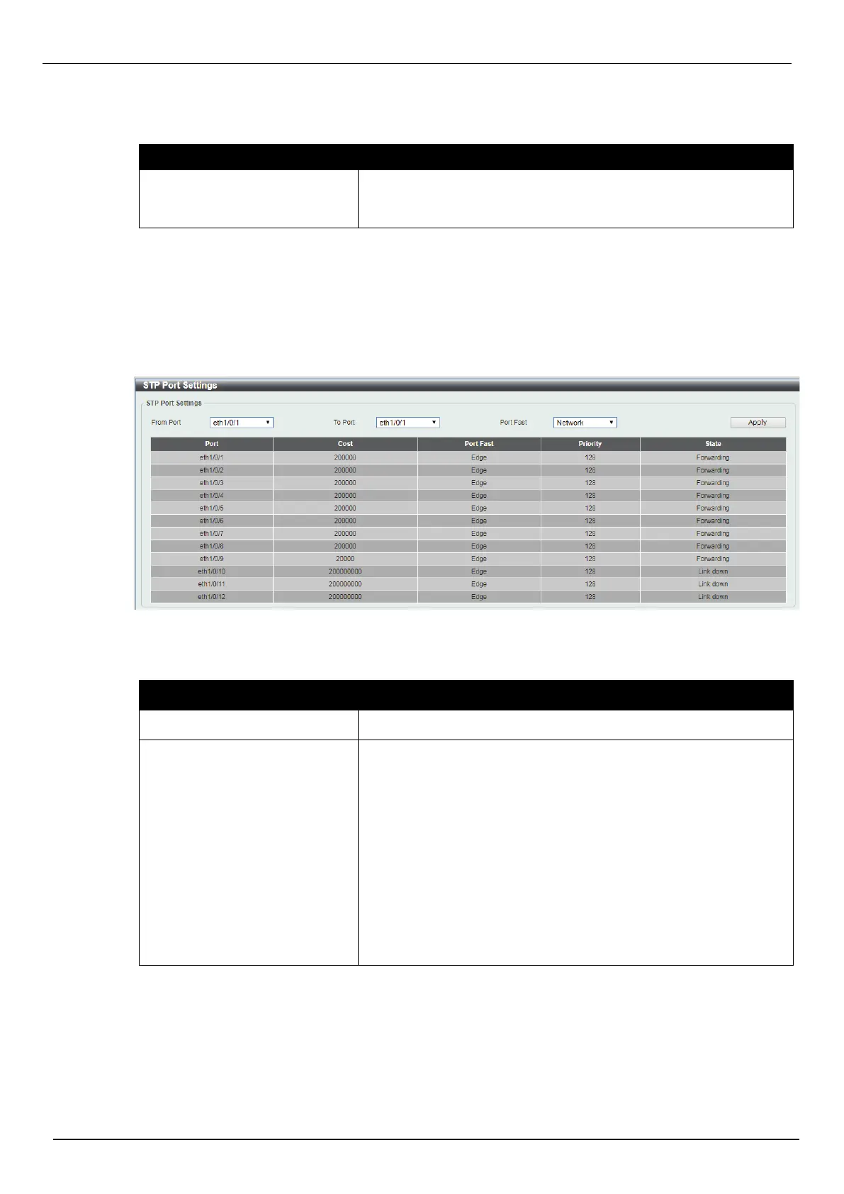 To view the following window, click L2 Features > Spanning Tree > STP Port Settings, as shown below: