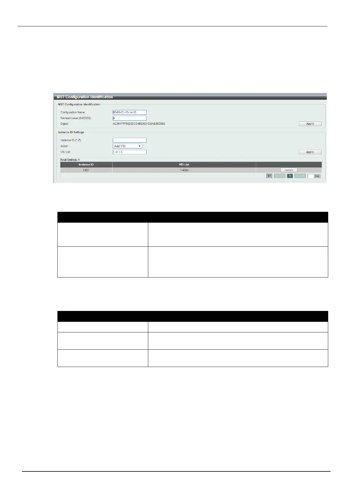 To view the following window, click L2 Features > Spanning Tree > MST Configuration Identification,