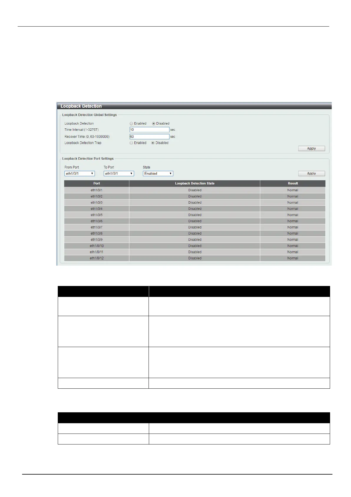 The fields that can be configured for Loopback Detection Port Settings are described below:
