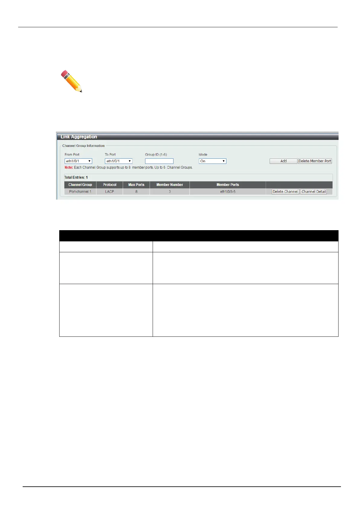 This window is used to view and configure the link aggregation settings.