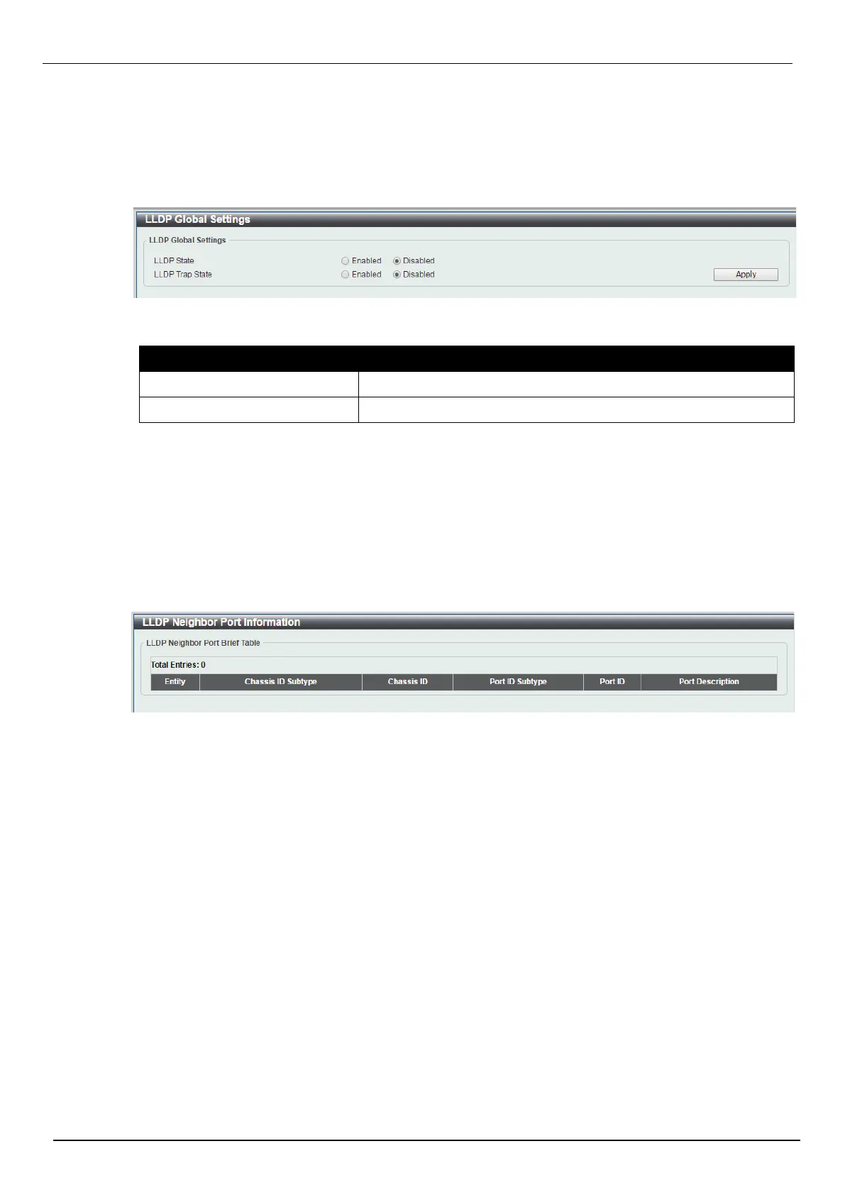 The fields that can be configured for LLDP Global Settings are described below: