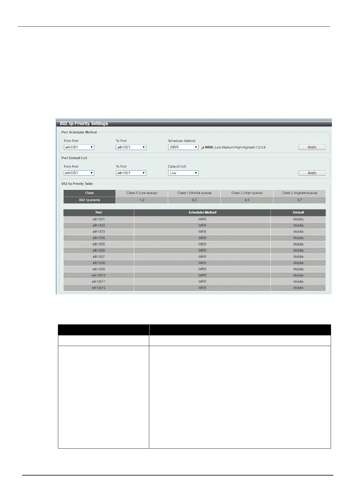 To view the following window, click QoS > 802.1p Priority, as shown below: