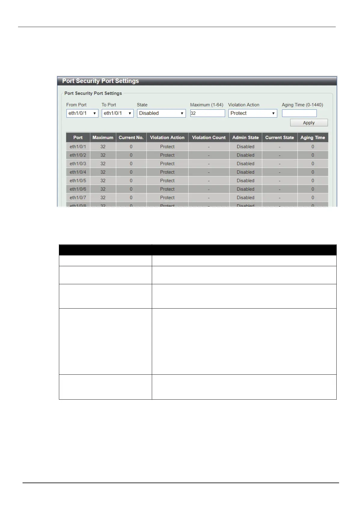 To view the following window, click Security > Port Security > Port Security Port Settings, as shown
