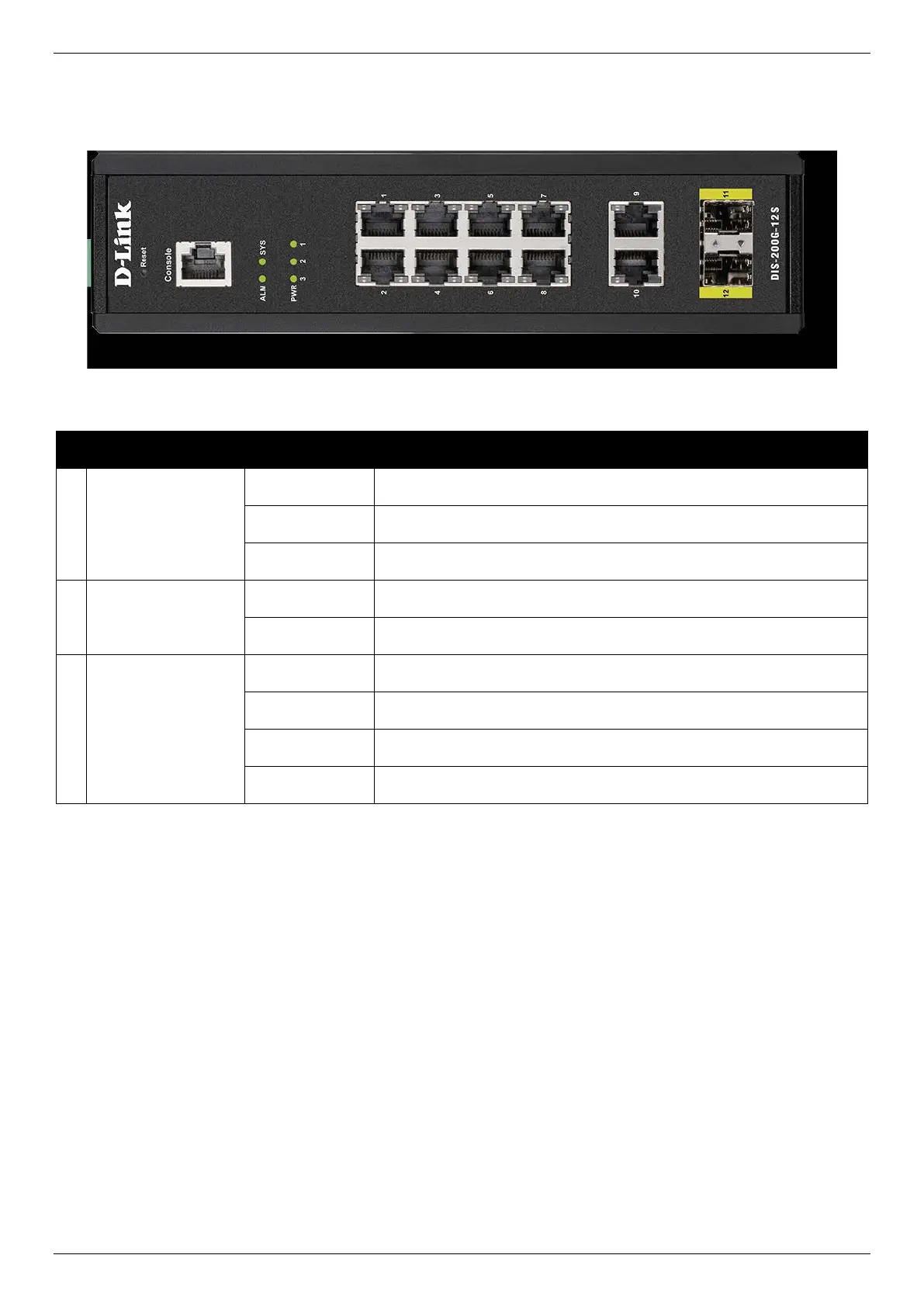 Figure 1-6 LED indicators for the DIS-200G-12S/12SW