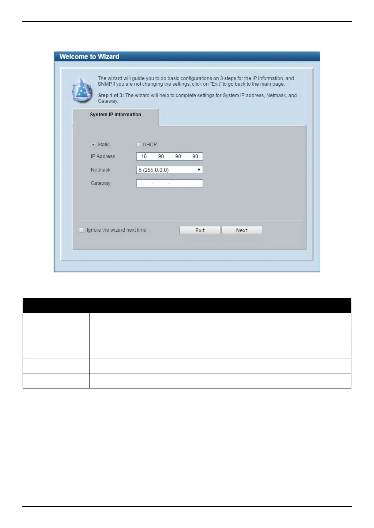 Click the Exit button to discard the changes made, exit the Smart Wizard, and continue to the Web UI.