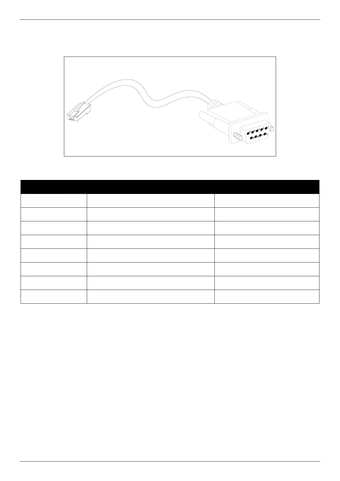 following diagram and table show the standard RJ-45 to RS-232 cable and pin assignments.
