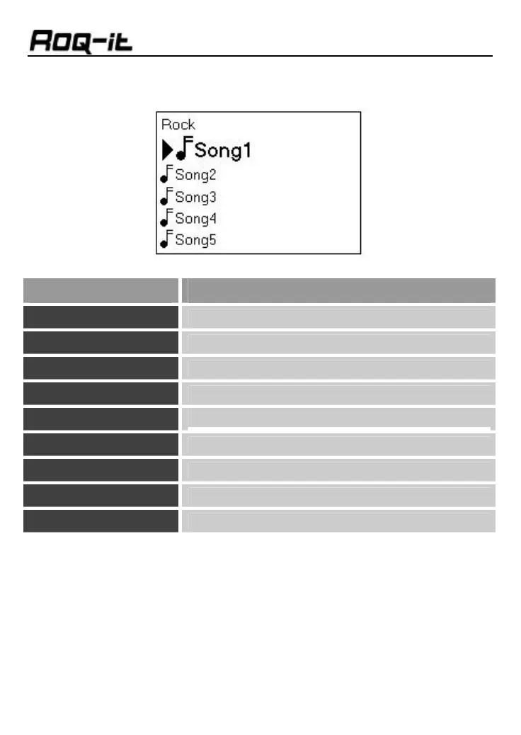 Songs are indicated by a “musical note.” Use the Up and Down arrow keys