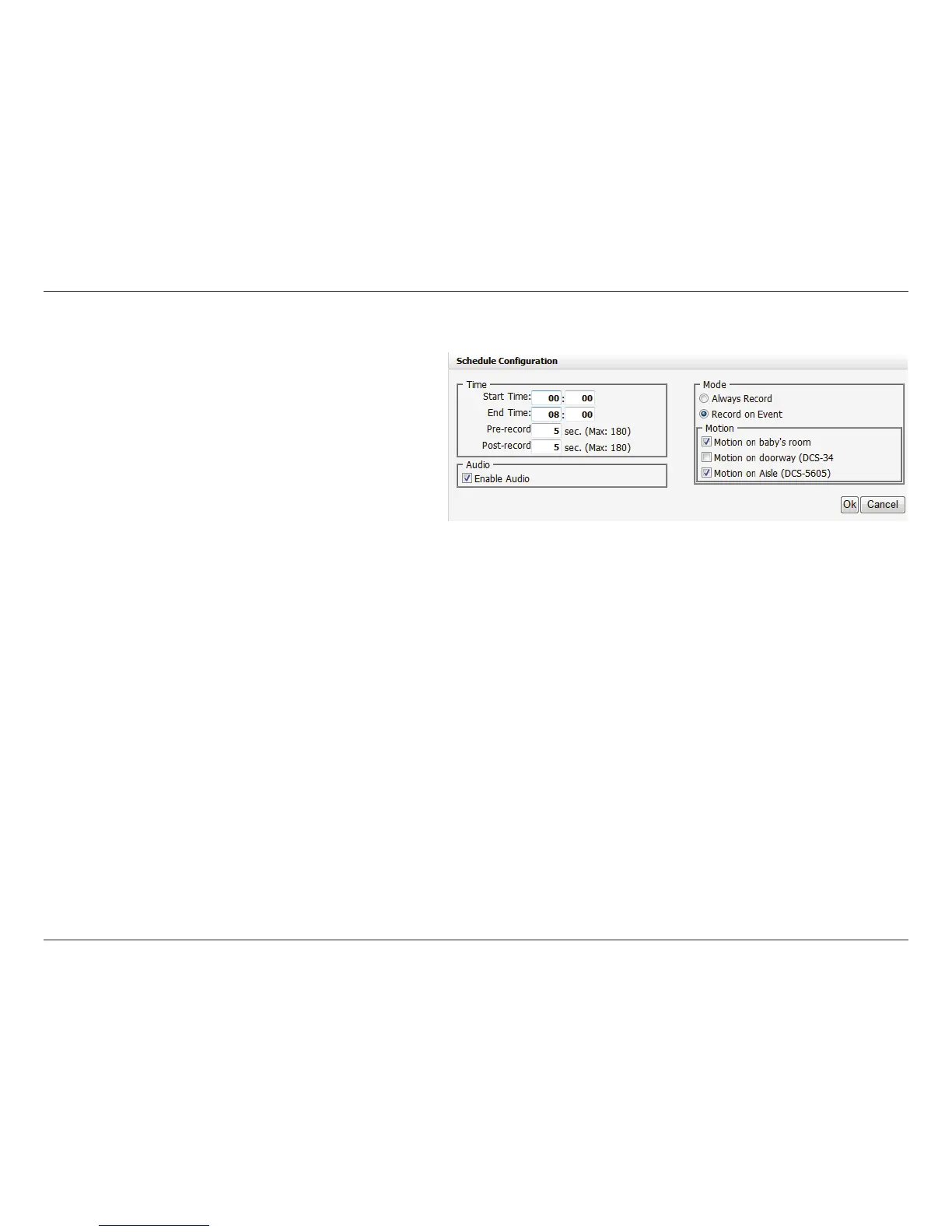 • Alternatively users can drag the time bar to change the recording period. The red bar represents the Always Record feature and the blue bar