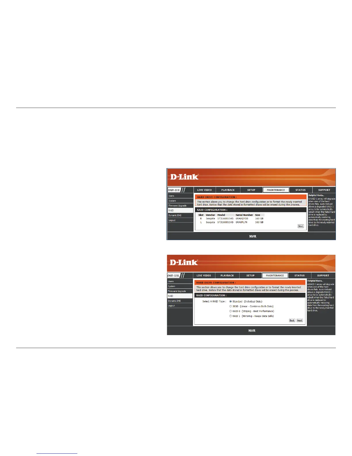 Choose from four different hard drive configurations in this section. Begin by clicking Set RAID Type and Re-Format.