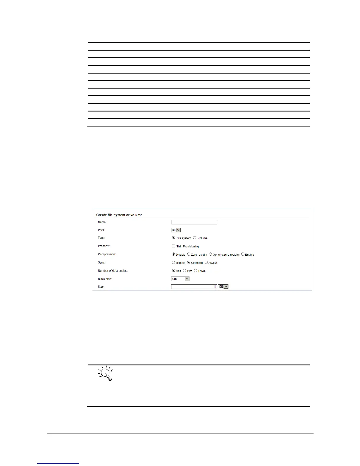 4. Select Type, Property, Compression type, Sync, and Number of Data Copies.