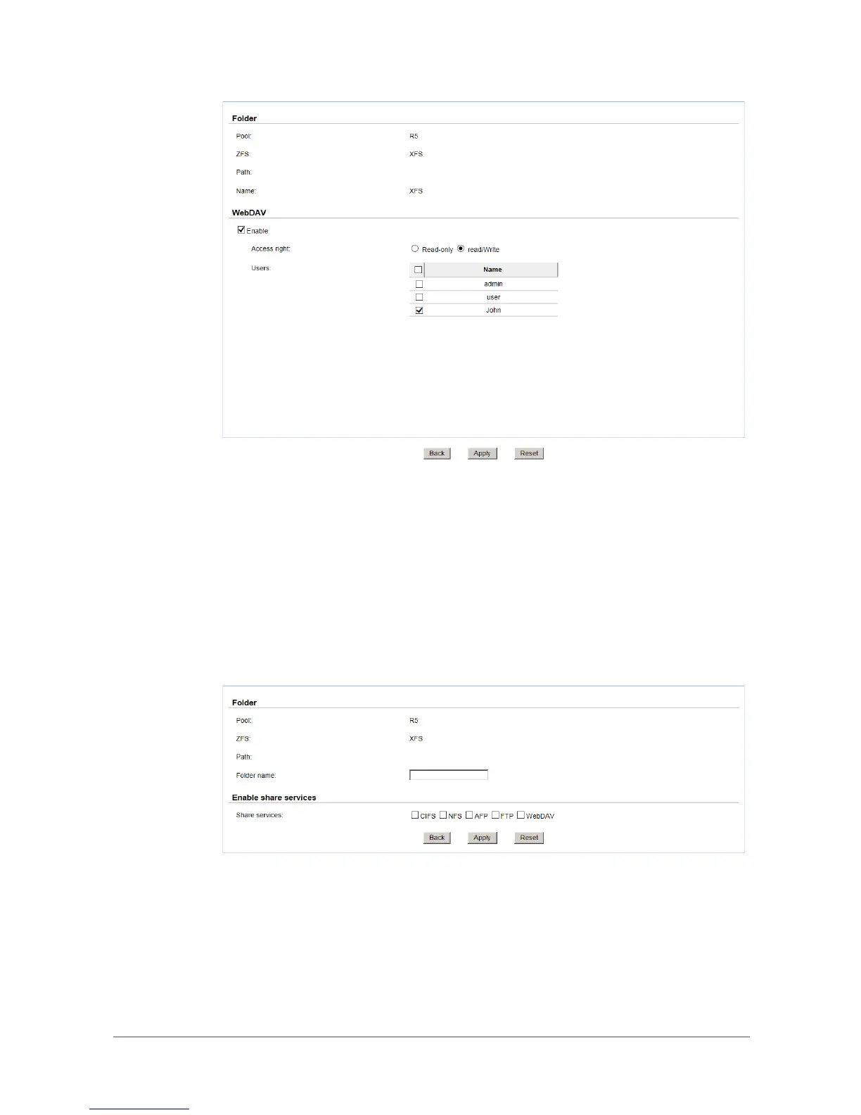3. Click the check box to share the folder by CIFS, NFS, AFP, FTP or WebDAV protocols.