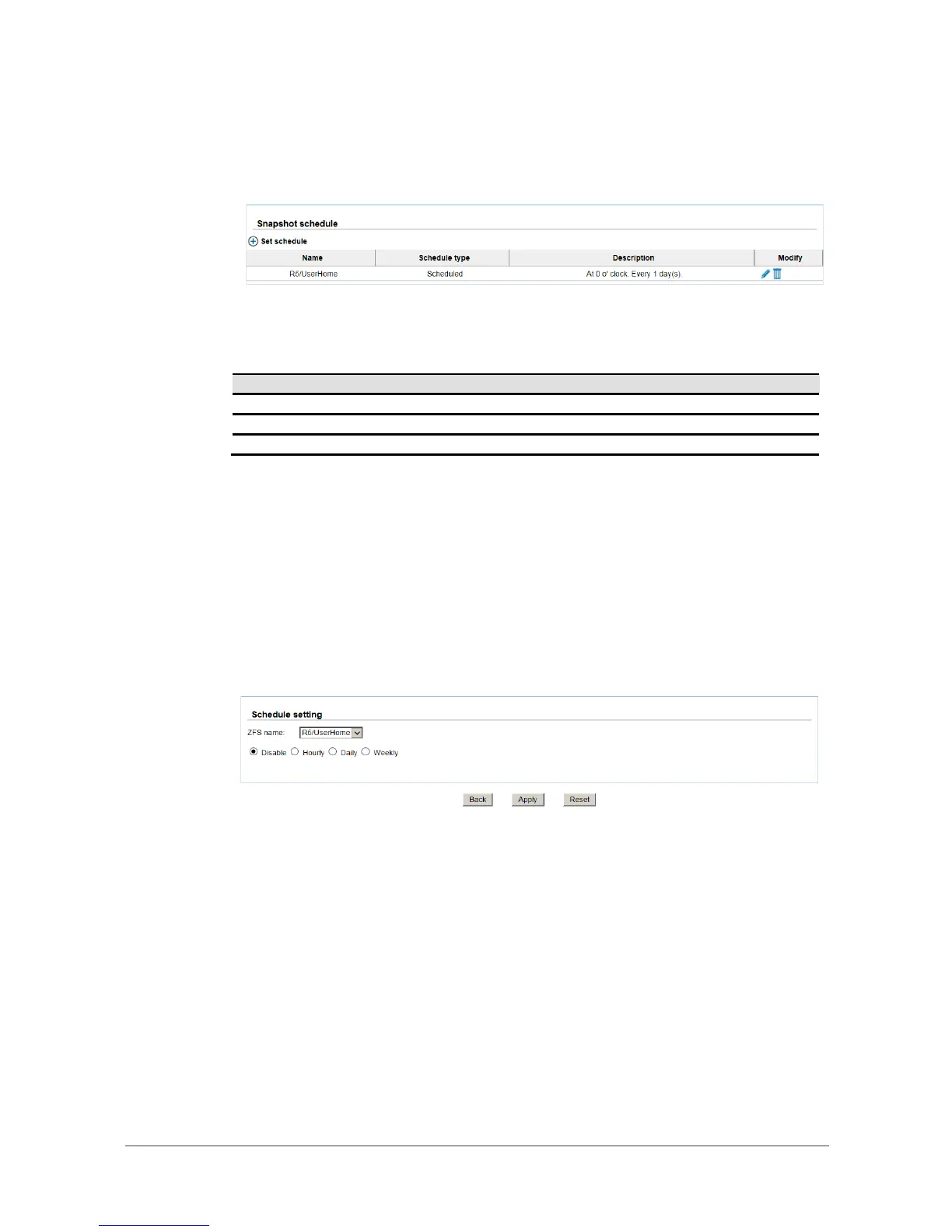 The Snapshot schedule tab provides the functions to set schedule snapshots.