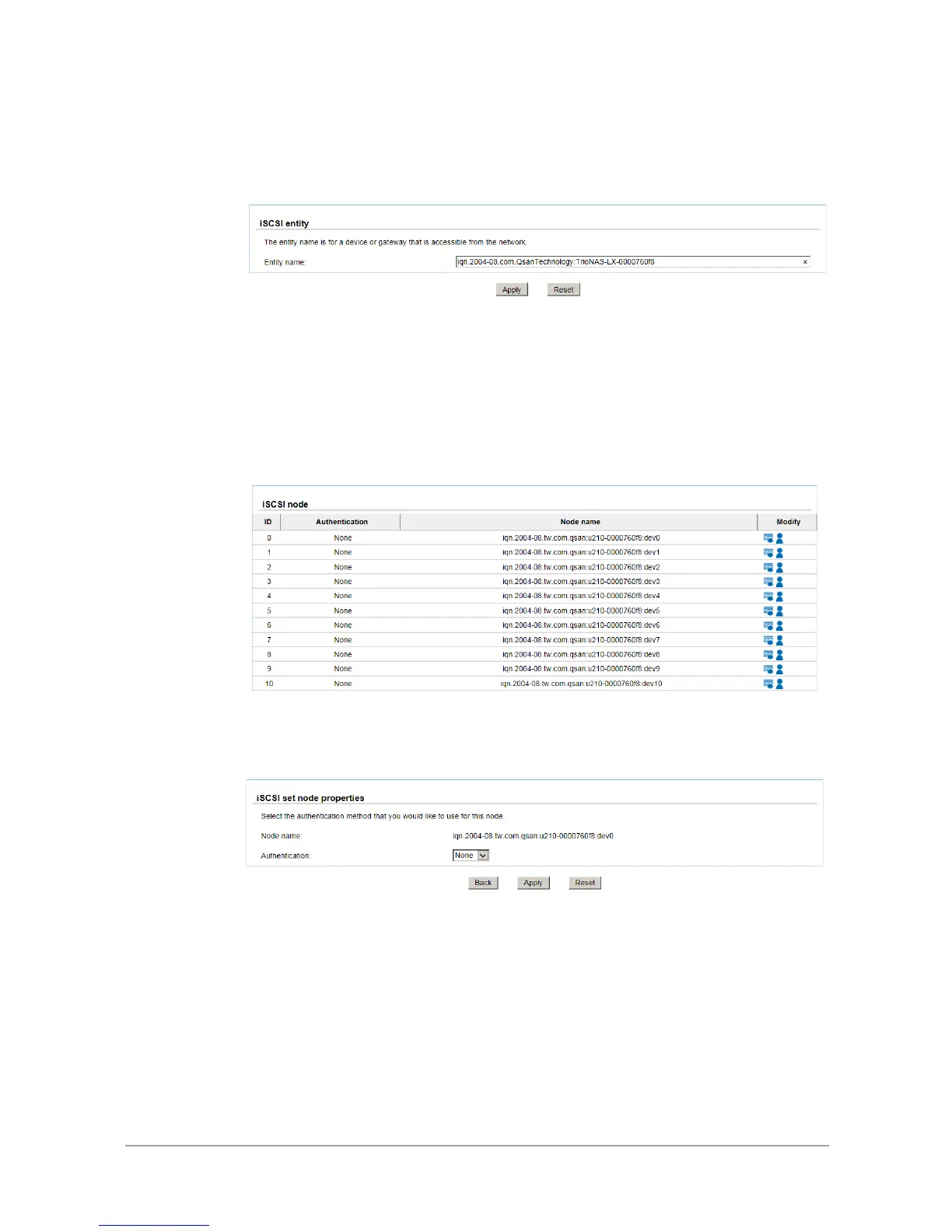 Enter the iSCSI entity name, and then click Apply button.