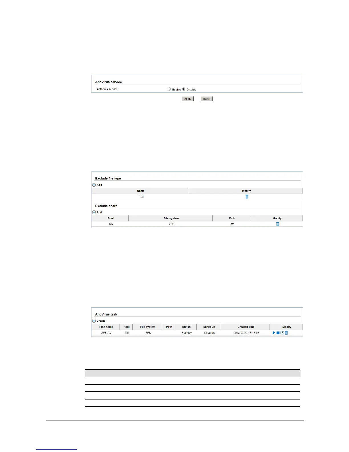 file extensions will be skipped when executing antivirus scanning. The same goes for Exclude share.