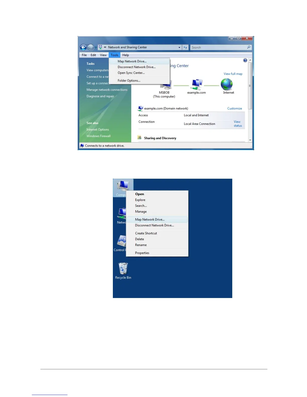 From the Computer icon on Desktop, right click on Computer icon and select Map Network Drive.