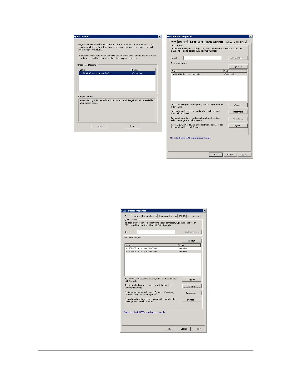 1. Select the target name, click Disconnect button, and then click Yes button.