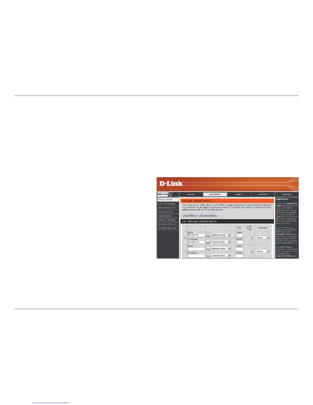 If you are using a D-Link router, such as the WBR-2310 used in the example below, your port forwarding rule should
