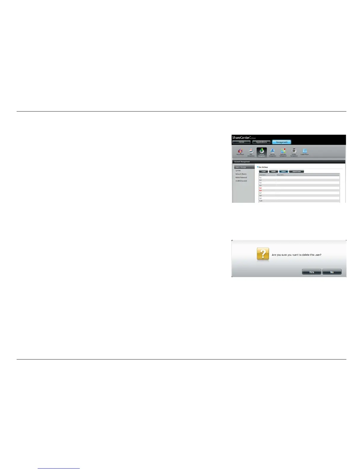 A message will appear prompting you to conrm deleting the user. Click Ye s