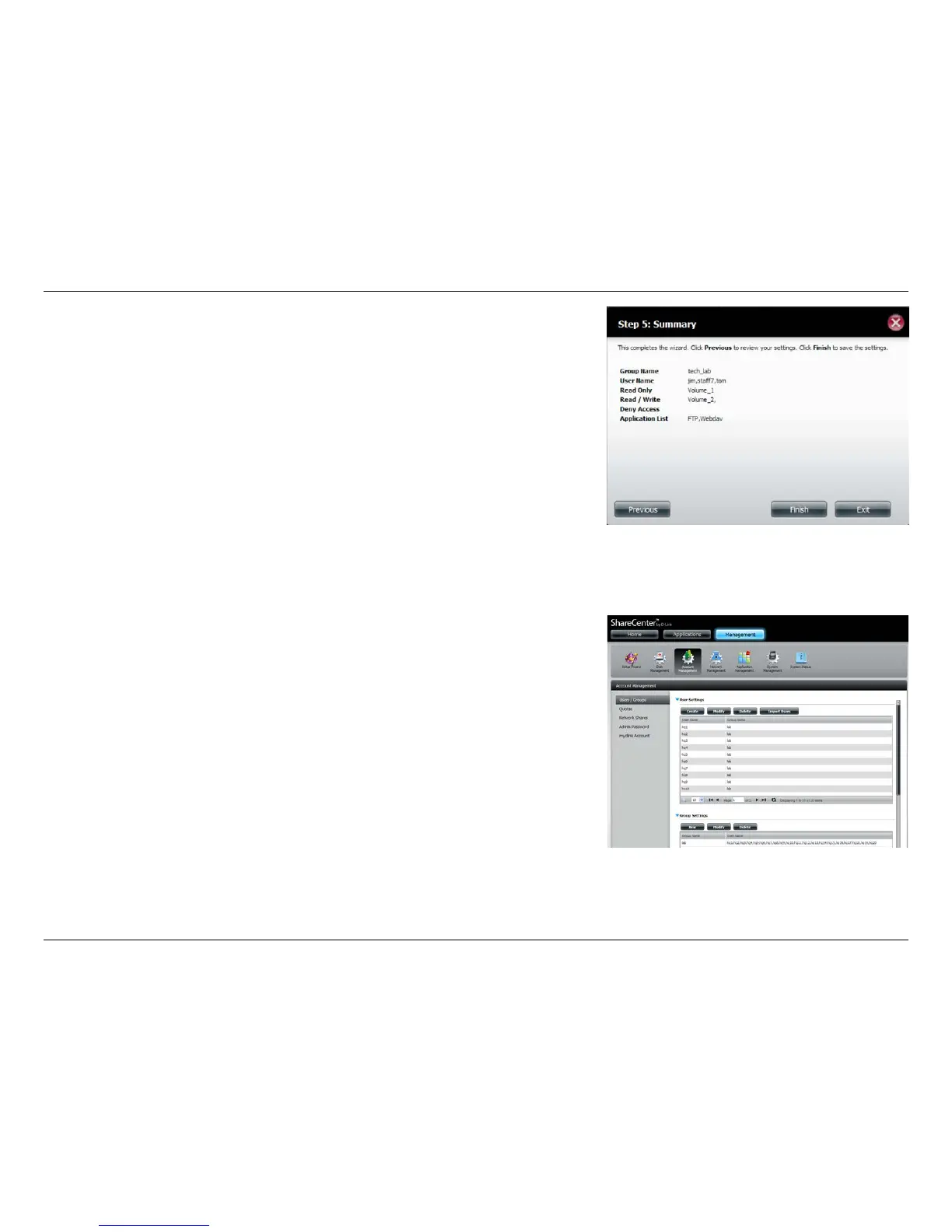 the group you created. Click Previous to change your settings or Finish to